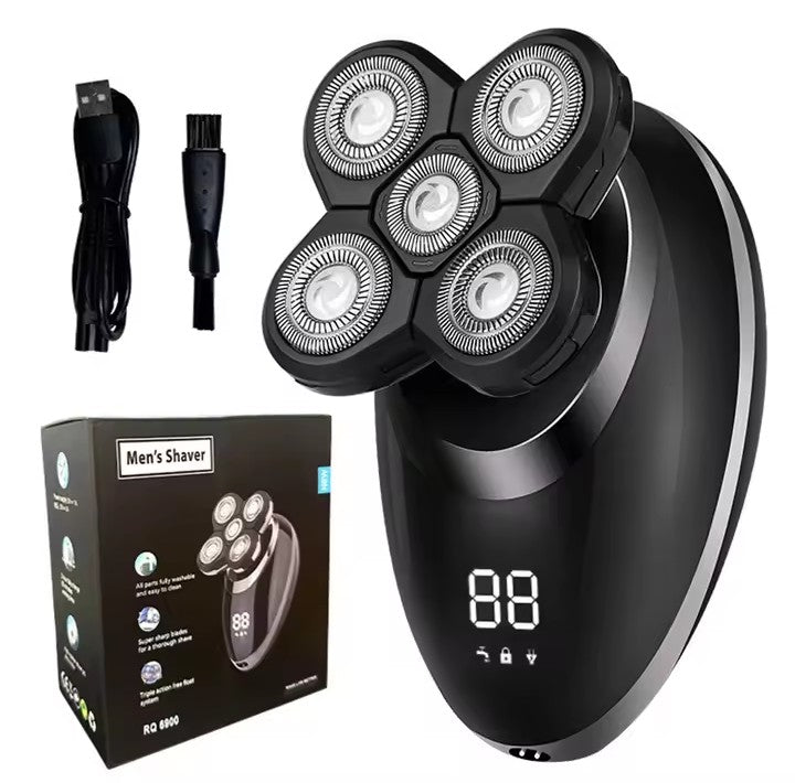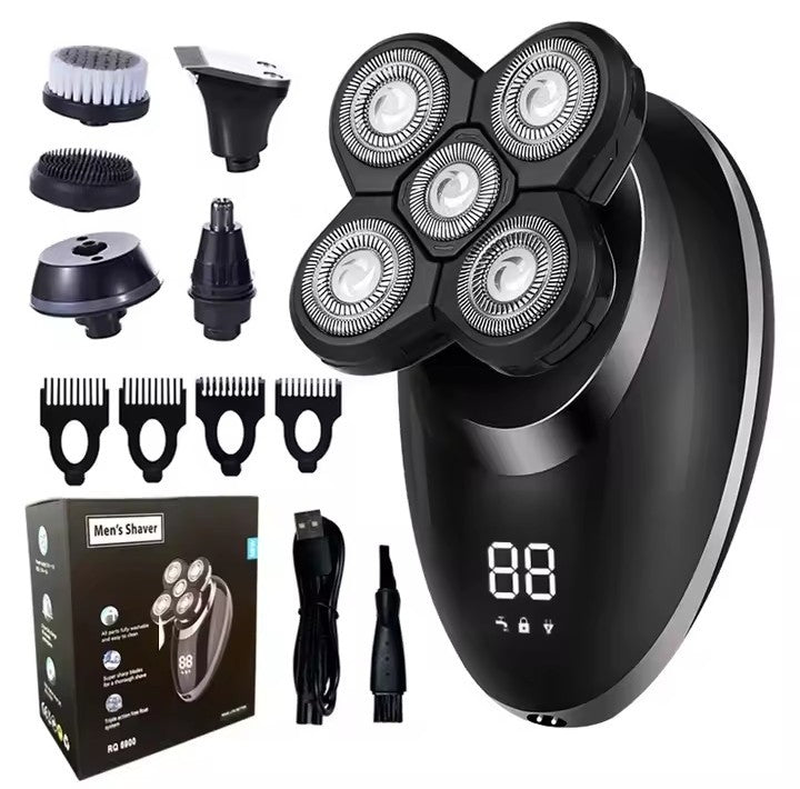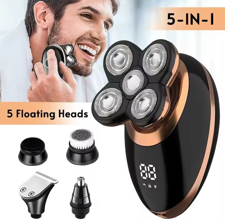 🪒 Este barbeador elétrico 5 em 1 oferece um barbear rente, preciso e confortável, com cabeças giratórias que se adaptam aos contornos do seu rosto.