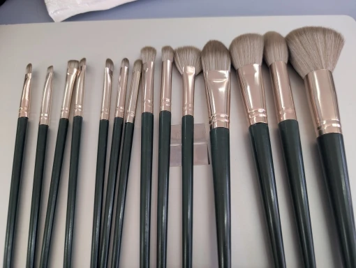 14 soft/fluffy green makeup brushes